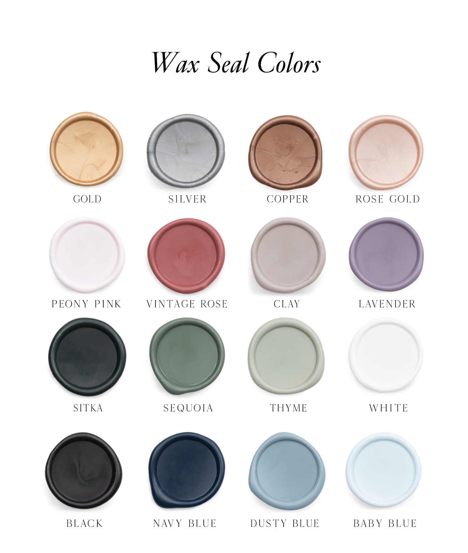 Elevate your wedding invitations with a custom wax seal, designed to seamlessly tie in with your suite. Choose from your initials, a single initial, or a design element from your invitation for a personalized, elegant touch. Available in a variety of colors, each wax seal arrives ready to adhere for effortless assembly. A sophisticated finishing detail for timeless, luxury wedding stationery.